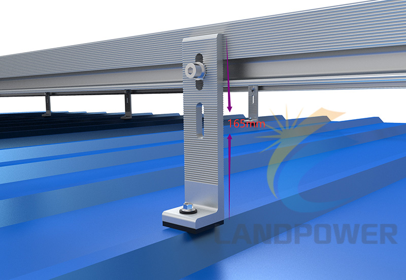 A Napelemes L lábak (L konzolok) egy jellemző 165 mm Magasság a napelemek és a tető közötti nagyobb távolság érdekében, javítva a szellőzést a hatékonyság növelése és a túlmelegedésből eredő tűzveszély csökkentése érdekében. Tartós 6005-T5 alumíniumból készült, minden konzol EPDM tömítéssel rendelkezik a vízszigetelés érdekében, és önmetsző csavarokkal rendelkezik mind fém, mind fa tetőkhöz, biztosítva a biztonságos és korrózióálló szerelést.